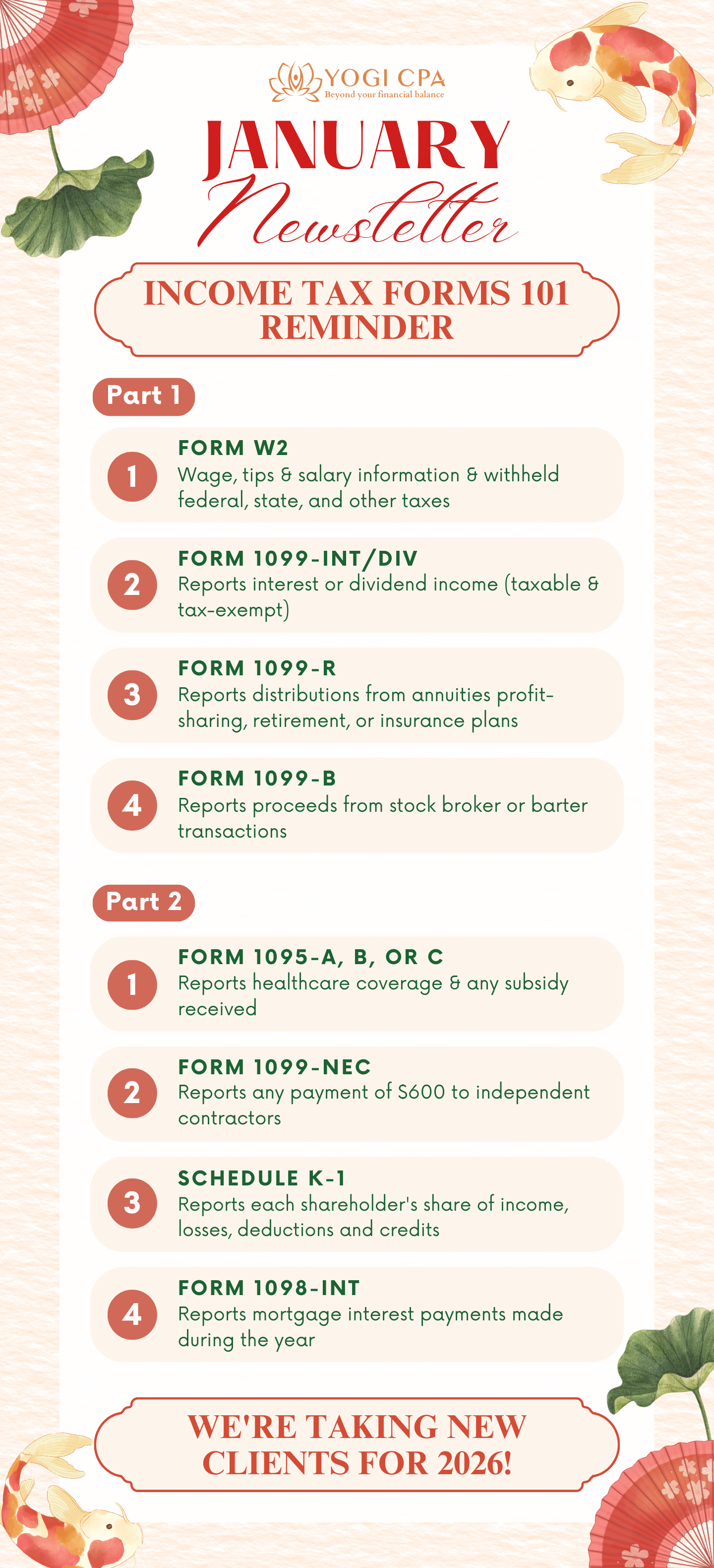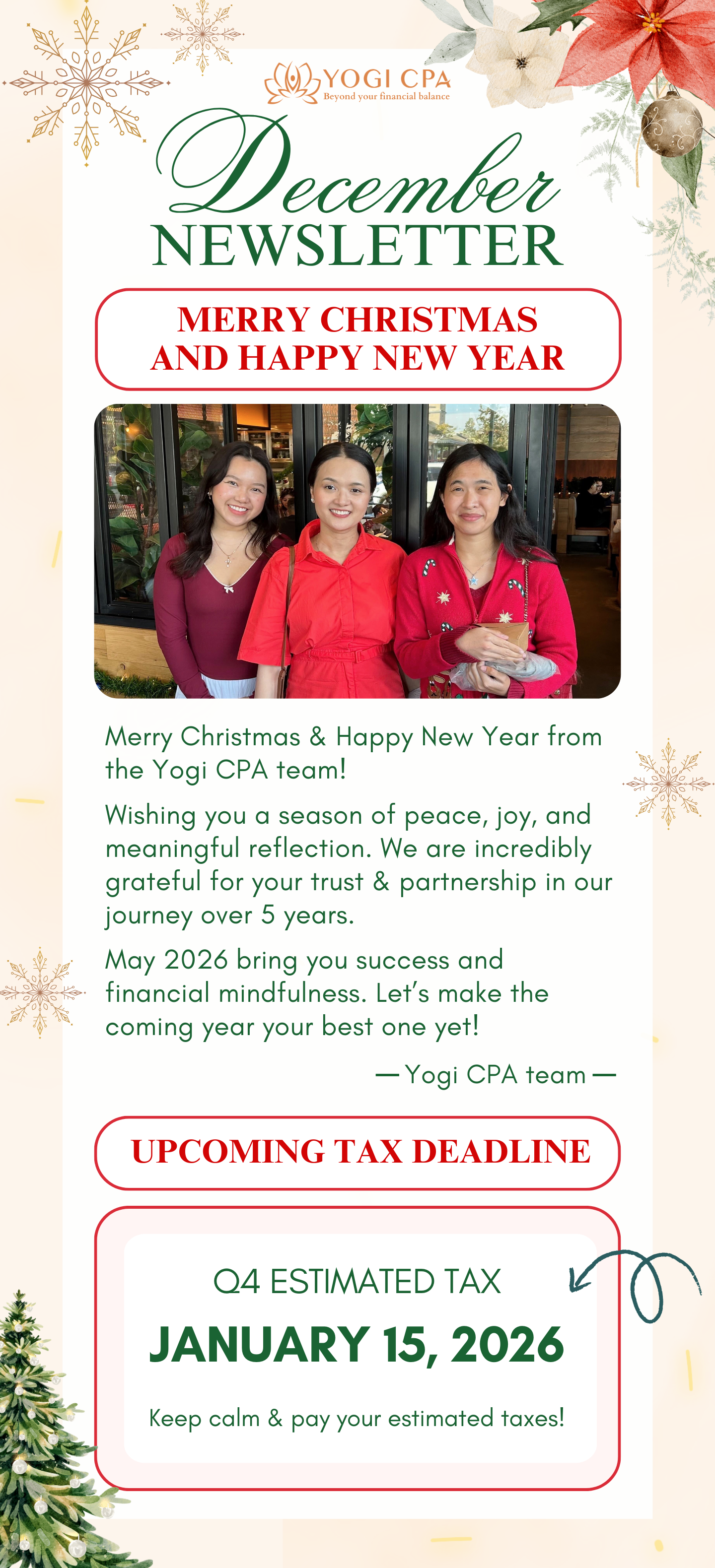 Our monthly newsletter will provide you with tax updates and financial strategies. Subscribe to receive updates from Yogi CPA!